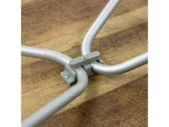 Een lichtgewicht maar zeer stabiele campingtafel. De tafel is heeft een glasfiber top met kunststof rand welke hittebestendig en watervast is. Het frame is van aluminium en de campingtafel is voorzien van voetjes met stabilisatoren zodat de tafel op iedere ondergrond stevig staat. Tevens zijn de poten in hoogte te verstellen (traploos): 59/72 cm.