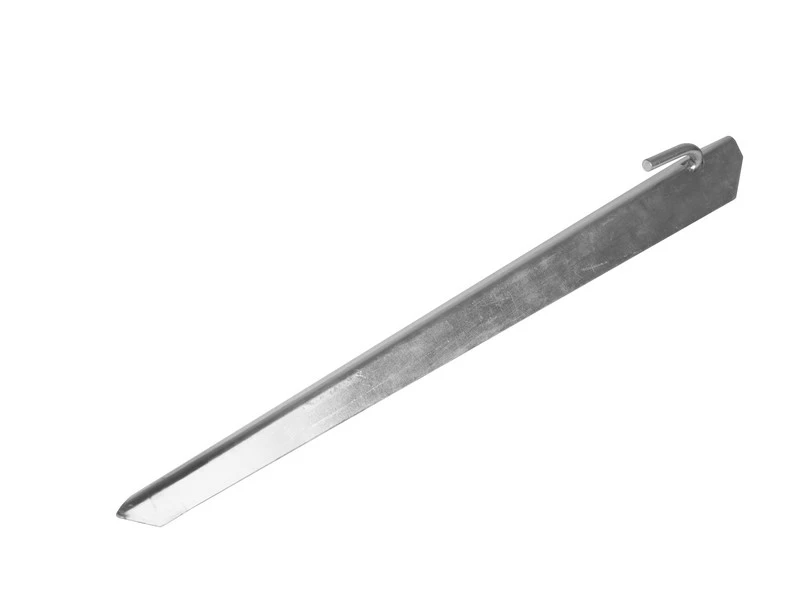 Stormharing voor een stormband. Deze haring is geschikt voor het stevig vastzetten van stormbanden. Hierbij kan het oog van een stormband aan de haring worden bevestigd.
