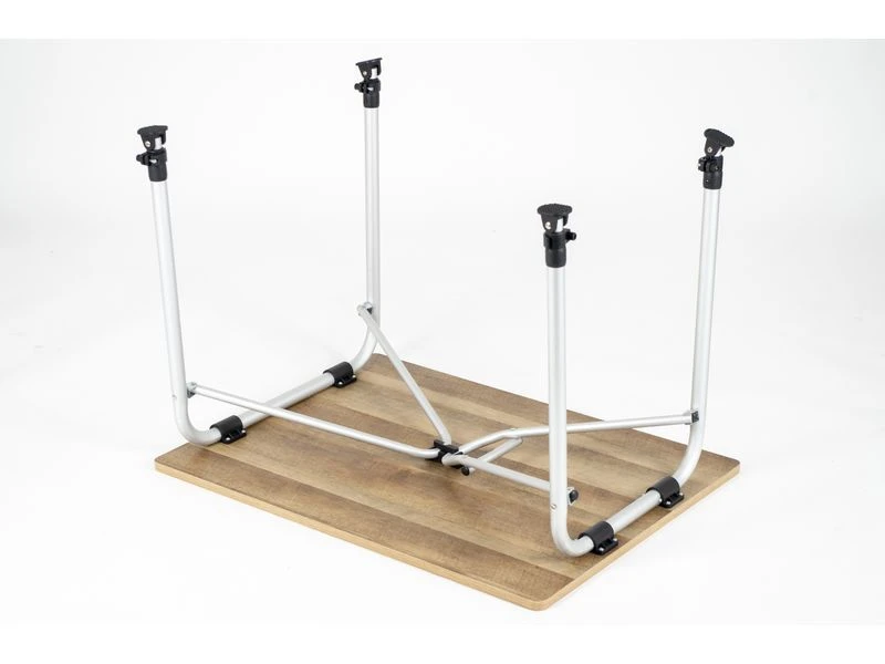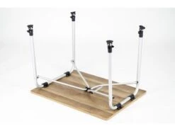 Een lichtgewicht maar zeer stabiele campingtafel met houtlook blad.