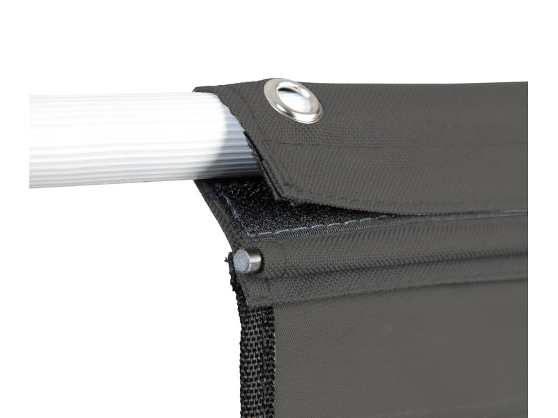 Een compacte multifunctionele 11-vaks organizer. Beschikt over 6 ruime vakken, 1 medium vak en 4 kleine vakken. Eenvoudig en op diverse manieren te bevestigen. Zo kan dit tentschort met de pees worden opgehangen aan een caravanrails, met het klittenband aan een tentstok of met de zeilogen aan haken. De lussen onderaan zorgen voor extra fixatie. Gemaakt van een hoge kwaliteit Two-Tone 600D Oxford Polyester.