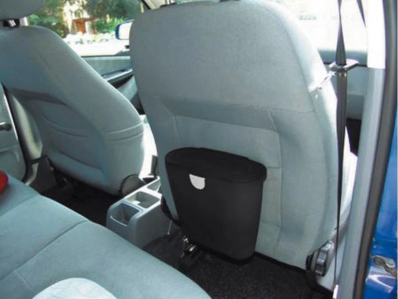 Een zeer compact vuilnisbakje. Kan worden gebruikt aan de achterkant van een stoel in de auto (inclusief autobeugel) of worden bevestigd in een caravan-keukenkastje (exclusief wandbeugel, los verkrijgbaar). Het prullenbakje wordt afgesloten met een deksel.