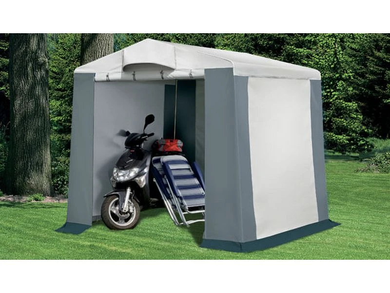 Deze XL bergingstent heeft een grondmaat van 230 x 200 cm. (bxh) en is daardoor zeer geschikt als praktische bergingstent voor al uw grote kampeerspullen zoals campingmeubilair, tafels en stoelen en de barbecue. Robuust en solide schuurtent dus uw kostbare spullen staan altijd droog en uit het zicht. Door zijn afmeting ook uitermate geschikt om meerdere fietsen in te stallen.