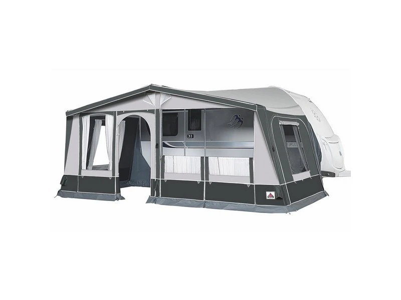 Deze voortent is geheel gemaakt van een extra zware kwaliteit Ten Cate All Season tentdoek. Hierdoor is de Horizon Air All Season ook prima geschikt om een langere tijd gedurende het jaar te gebruiken. Het aan de binnenzijde geprinte dak en de DoremaTex wanden geven de voortent een zeer exclusieve look. Dankzij het Easy Air Frame (EAF) wordt de voortent in enkele minuten opgebouwd. De voortent is standaard voorzien van een dubbele slikrand, onderling uitwisselbare voorpanelen en afgedekte ritsen.