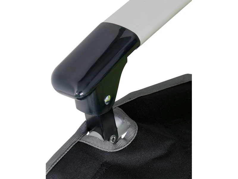 Hoogwaardige klapstoel met comfortabele aluminium armleuningen.