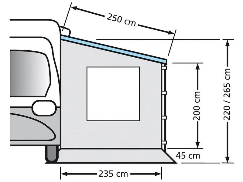 Universele zijwanden voor aan de caravan cassette luifels zoals Fiama of Omnistore.