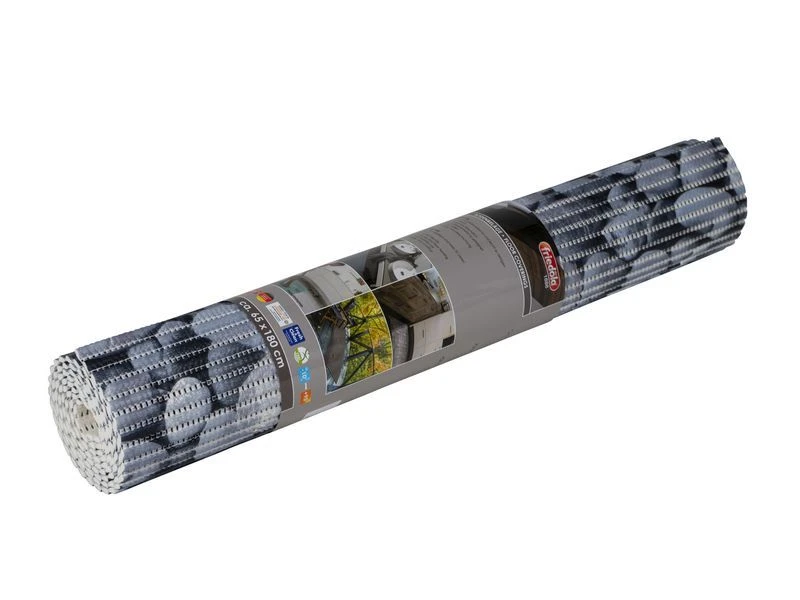 Universele antislipmat van 65 x 180 cm die zeer vuilafstotend en gemakkelijk te reinigen is. Hij is geschik voor binnen en buiten en voor sauna’s en voor vloerverwarming. Materiaal is 100% polyester met een vinylcoating.